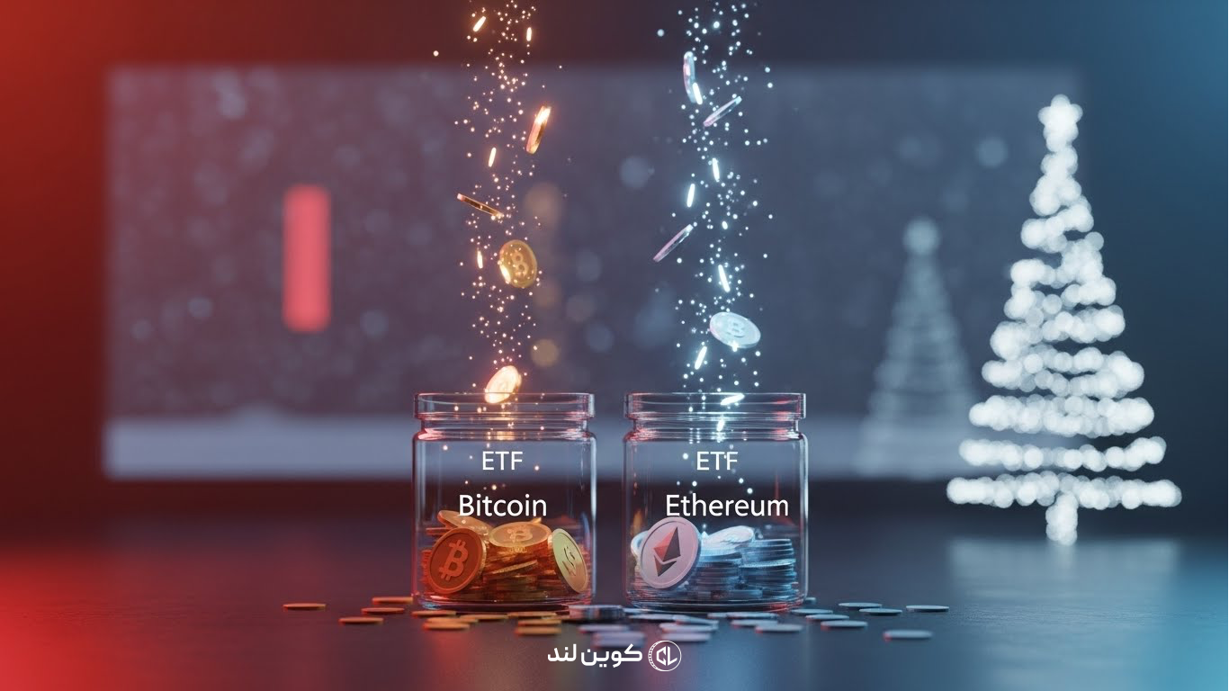 در حالی که بازارهای جهانی خود را برای تعطیلات کریسمس آماده میکنند، دادههای جدید نشاندهنده خروج قابلتوجه سرمایه از صندوقهای قابل معامله در بورس (ETF) بیتکوین و اتریوم در ایالات متحده است. کاهش نقدینگی در روزهای پایانی سال و استراتژیهای جدید سرمایهگذاران برای سال ۲۰۲۶ از اصلیترین دلایل این فشار فروش عنوان شده است.
