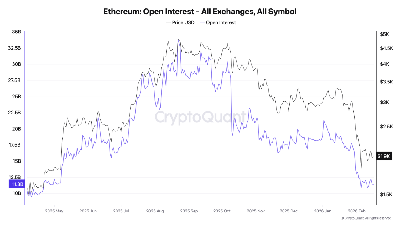 در روزهای اخیر، ساختار بازار اتریوم شاهد یک «پاکسازی» بیسابقه و تهاجمی بوده است. بر اساس تازهترین گزارش پلتفرم CryptoQuant، میزان قراردادهای باز (Open Interest) اتریوم از زمان ثبت آخرین سقف تاریخی خود، بیش از ۶۶ درصد سقوط کرده است.